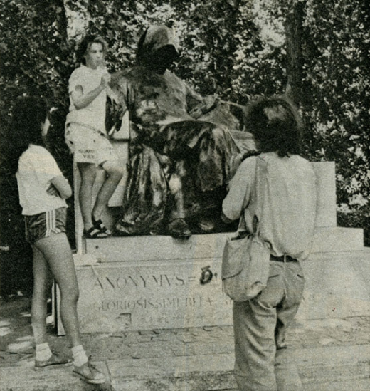 - Na jó - adtam be végül derekam -, eleget voltam már "rendes ember", kipróbálom az ellenkezőjét. (De csak játszásiból!) Egy pillantás a tükörbe: borostás vagyok, hajam csapzott, a ruha gyűrötten lóg rajtam, a mosolyom ördögi - egyszóval félelmetes vagyok. (Csak a szemem riadt egy kicsit.) Mindent megpróbálok, hogy megnehezítsem akciónk sikerét. Elindultunk Tamás kocsijával, az álcázásnak magunkkal vitt félig arab lány, Szeula bátorított: "Ne izgulj, engem naponta leszólítanak, tegnap is egy fiú azt mondta, egy komoly magazinnak akar lefotózni. Na persze, átláttam rajta." Bólintottam, ez lesz az én szerepem is. Én sem vagyok igazi fotós, csak úgy fogok viselkedni. Leszólítom a lányokat, elcsalom őket - hová is? -, ja, csak ide a Vajdahunyad vári Anonymus szoborhoz. Közben persze kábítom őket valami nagy dumával. És persze beszéltetem őket. A ligetben látszólag nincs nagy kockázata szóba állni ismeretlennel. Mindenfelé sétálgatnak emberek. (Inkább én voltam indiszponált, valahogy nem akarózott produkálni magamat. "Gyerünk, gyerünk, szólíts már le valakit!" - sziszegte, mint a kísértés kígyója, Urbán kolléga, - "mit bénázol!?" Könnyű neki! Ő csak azt veszi filmre, amit én művelek.) Őgyelegtem, úgy vizslattam a lányokat, mint potenciális áldozatokat. Nem kell, hogy szép legyen, vagy érdekes. Áldozat legyen. Eltűnődtem, s megsejtettem valamit abból az ördögi szenvedélyből, ami a viktimológusok, az áldozatok lélektanát kutató szakemberek tárgykörébe tartozik.
