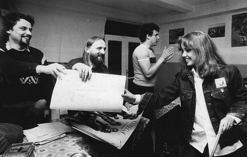 Közben szerveztük az IM esteket, a rock jegyében. Czippán Gyuri szobája napi 12 órában fogadta a zenekarok képviselőit és az ifjúsági klubok vezetőit, szépen összeboronálta őket, aztán a következő hónapban több oldalon keresztül jelentethettük meg a magazinos műsorokat. Node már április végét írtuk. Megint a brigád férfi tagjain volt a sor! Egy napos késéssel, de április 17-én meglocsoltuk a brigád lányait és asszonyait. Pécsi Gábor volt a legaktívabb: kölnivel kezdte kólával folytatta, s meg sem állt a pezsgős locsolásig.