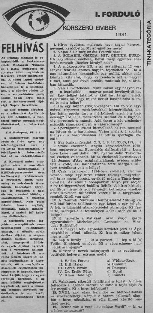 Közben meghirdettük a lapban az Országos Bűvös-kocka versenyt. Budapesten a Fővárosi Művelődési Házban volt az első elődöntő, de az ország számtalan művelődési házában tekertek a fiatalok fél éven keresztül.